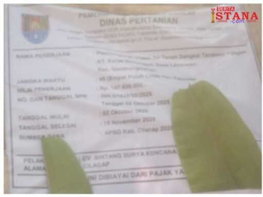 CILACAP | – Proyek vital Pembangunan Irigasi Air Tanah Dangkal untuk Kelompok Tani (Kt.) Karya Manunggal di Desa Layansari, Kecamatan Gandrungmangu, kini menjadi sorotan tajam. Selain pengerjaannya yang melampaui batas waktu kontrak (deadline), sikap para pejabat di Dinas Pertanian Kabupaten Cilacap yang terkesan saling lempar tanggung jawab memicu polemik terkait transparansi anggaran publik.
