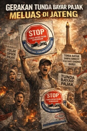 Jawa Tengah sedang mendidih. Bukan mendidih seperti kuah tahu gimbal di pinggir Simpang Lima. Ini mendidih seperti laut utara yang pasang, menghantam tanggul, merangsek tanpa ampun. Sejak 13 Februari 2026, gerakan tunda bayar pajak bukan lagi sekadar ajakan iseng di grup WA. Ini sudah jadi gelombang kemarahan yang memantul dari Kota Lama sampai lereng Merbabu.