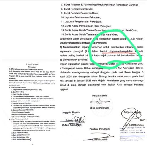 Adapun fakta fakta nya pada putusan komisi informasi jawa timur dan 5 putusan Komisi informasi pusat dan 5 putusan Komisi informasi Jakarta . dengan Fakta Fakta :
