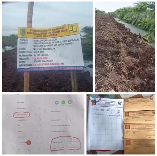 Rokan Hilir, Riau | – Kegiatan kontrol kebijakan publik terhadap pembangunan jalan KM 28 di RT 017 / RW 008 Dusun Mekar Jaya, Kepenghuluan Sungai Pinang, Kecamatan Kubu Babusalam, Kabupaten Rokan Hilir, Provinsi Riau, menemukan kendala serius.