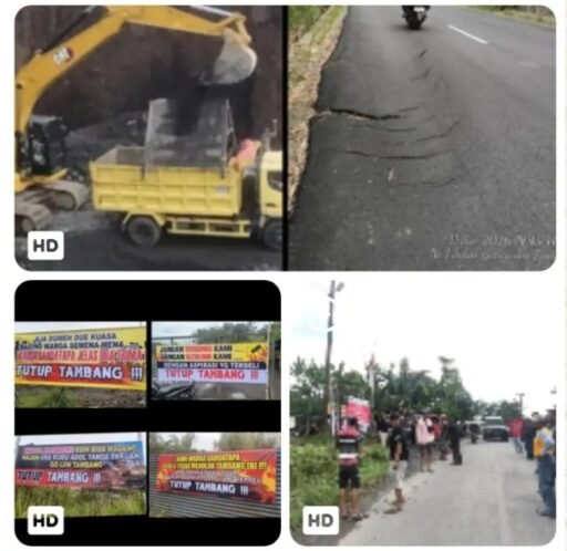 Banyumas, JAWA TENGAH | – Ratusan warga masyarakat Desa Gandatapa, Kecamatan Sumbang, bersama dengan Aliansi Warga Peduli Masyarakat, menggelar aksi damai penolakan terhadap aktivitas operasional tambang galian C yang berlokasi di kawasan kaki Gunung Slamet. Aksi yang digelar pada hari Minggu (11/1/2026) tersebut diwarnai dengan pemasangan empat buah banner bertuliskan pesan penolakan, yang secara simbolis dipasang langsung di sekitar lokasi tambang milik PT Sejahtera Keluarga Bumiindo.